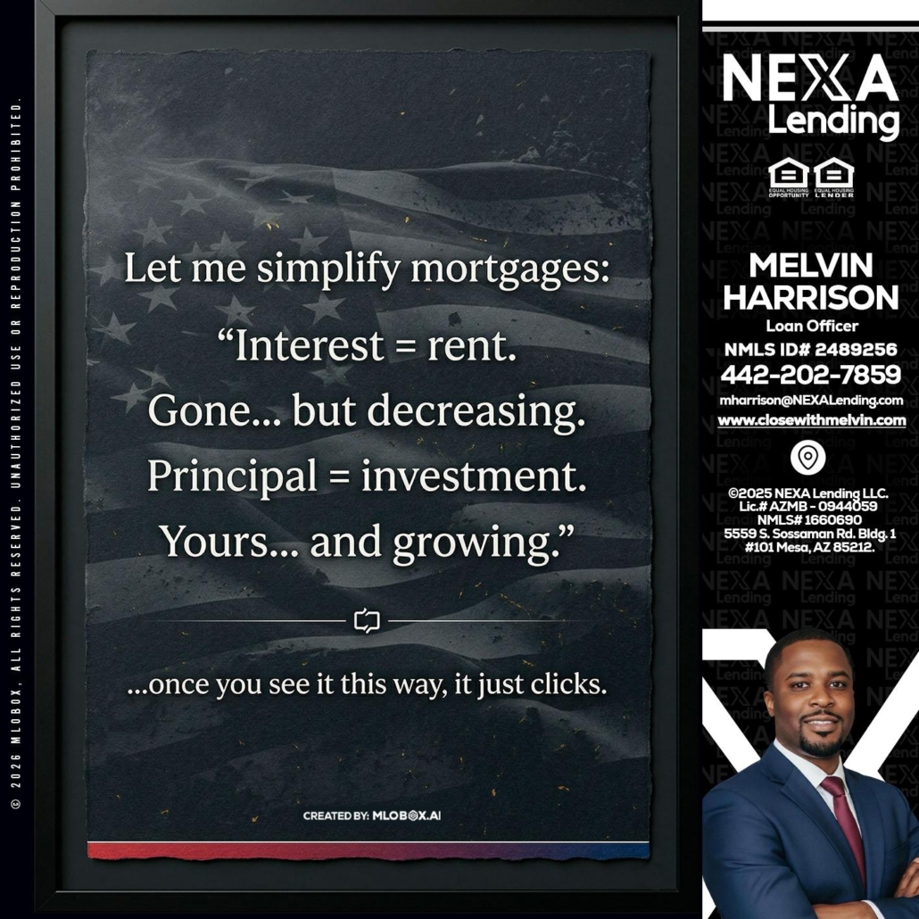 Hi, my name is Melvin Harrison. I’m a Loan Officer with NEXA Lending LLC., offering personalized mortgage solutions, fast customized quotes, great rates and service with integrity.